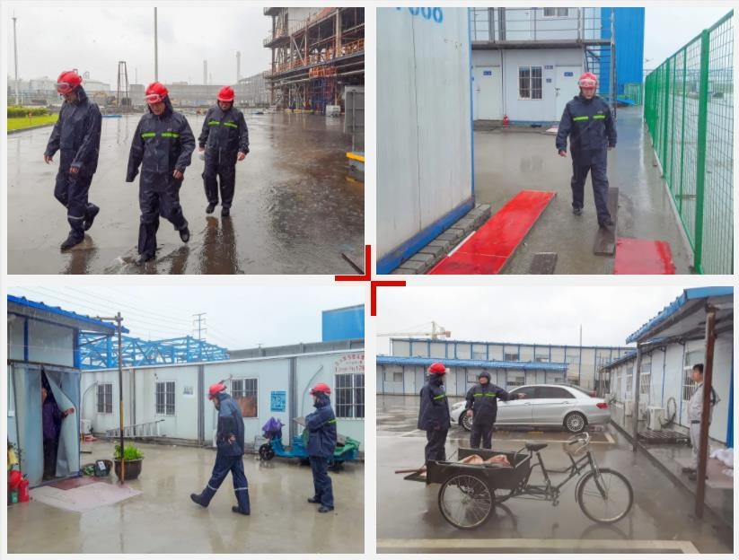 總裁帶隊對工廠生產裝置、生產綜合樓、臨建辦公室、施工現場及工人宿舍等地,檢查相關防臺措施落實情況。