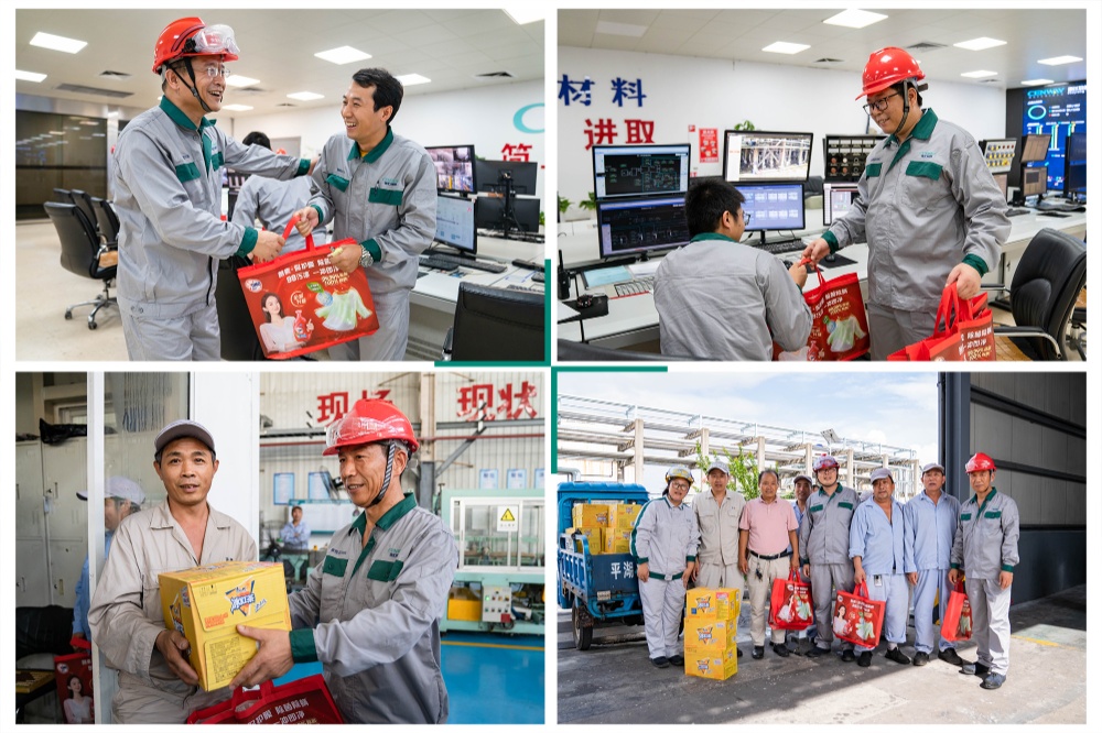 8月初,公司總裁張學琪、副總裁尤昌嶺、工會主席柴世正等人一行走進車間,為一線員工送去冰紅茶等防暑降溫物資。同時叮囑大家高溫天氣時更要關注自身健康,備好防暑降溫物資,在確保安全的前提下,完成各項生產任務。