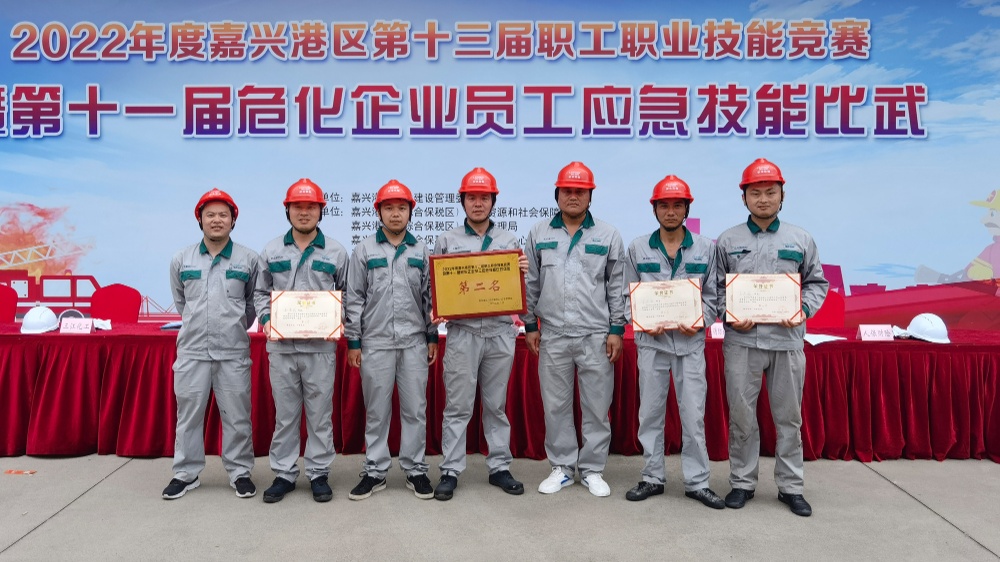 6月23日,嘉興港區(qū)2022年度第十三屆職工職業(yè)技能競(jìng)賽暨第十一屆?;髽I(yè)員工應(yīng)急技能比武順利舉行。嘉興港區(qū)管委會(huì)領(lǐng)導(dǎo),應(yīng)急管理局、人力社保局、總工會(huì)、消防救援大隊(duì)、應(yīng)急響應(yīng)中心、中國人保港區(qū)支公司等部門、單位負(fù)責(zé)人蒞臨觀摩。在與37支企業(yè)代表隊(duì)的角逐中,浙江信匯代表隊(duì)以敢打敢拼、精誠合作的團(tuán)隊(duì)精神奪得團(tuán)體總分第二名。