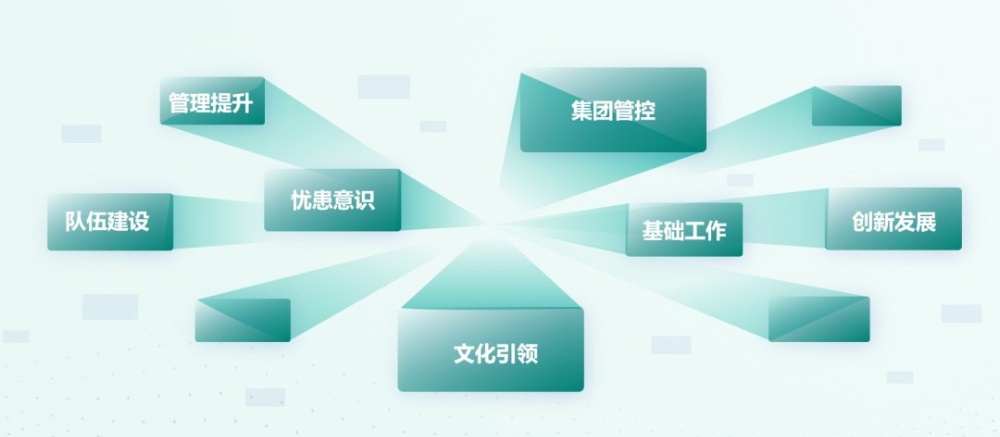 三、工作抓手 以集團管控、憂患意識、基礎工作、管理提升、隊伍建設、創(chuàng)新發(fā)展、文化引領為主要工作抓手。