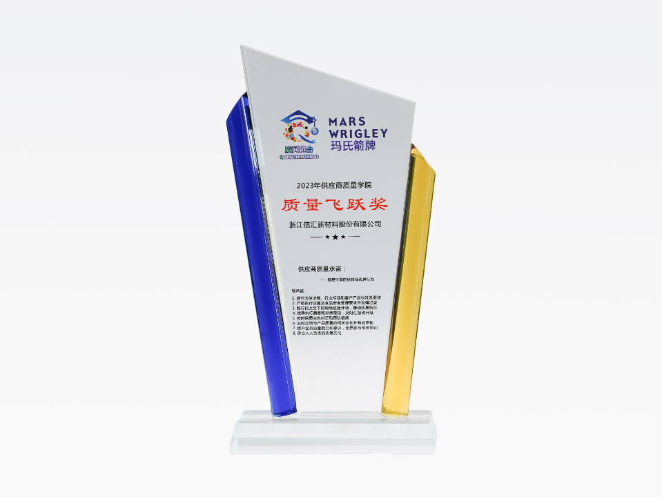 近日,浙江信匯新材料股份有限公司榮獲瑪氏箭牌公司頒發的2022年度供應商質量學院“質量飛躍獎”。 ![]() 浙江信匯榮獲瑪氏箭牌中國“質量飛躍獎” 這一獎項是瑪氏箭牌公司基于對產品質量和食品安全的高度重視而設立。旨在從眾多供應商中評選出過去一年質量穩步提升的優秀供應商,并予以表彰及感謝。浙江信匯憑借優質的產品質量和按時交付率等優勢從眾多供應商中脫穎而出,摘得此獎項。