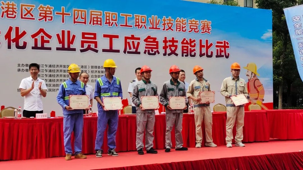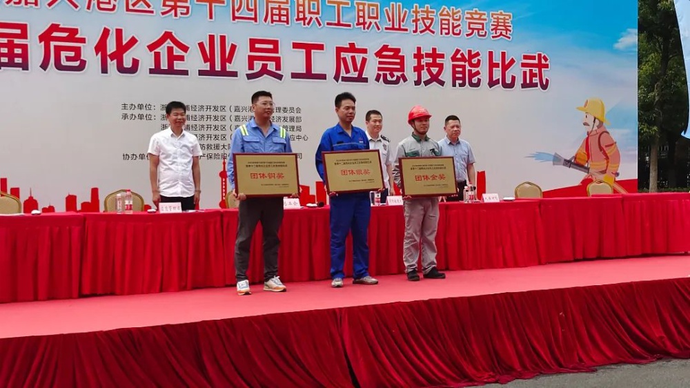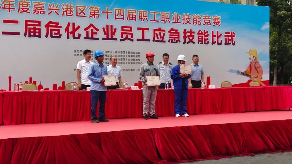 6月21日,嘉興港區第十四屆職工職業技能競賽暨第十二屆危化企業員工應急技能比武在嘉興港區消防救援大隊隆重舉行。嘉興港區管委會有關領導,黨群工作部、經濟發展部、應急管理局、應急響應中心、消防救援大隊、總工會、中國人保公司等部門、單位負責人蒞臨觀摩。在與全區47支企業代表隊的激烈角逐中,浙江信匯代表隊奪得團體總分第一名