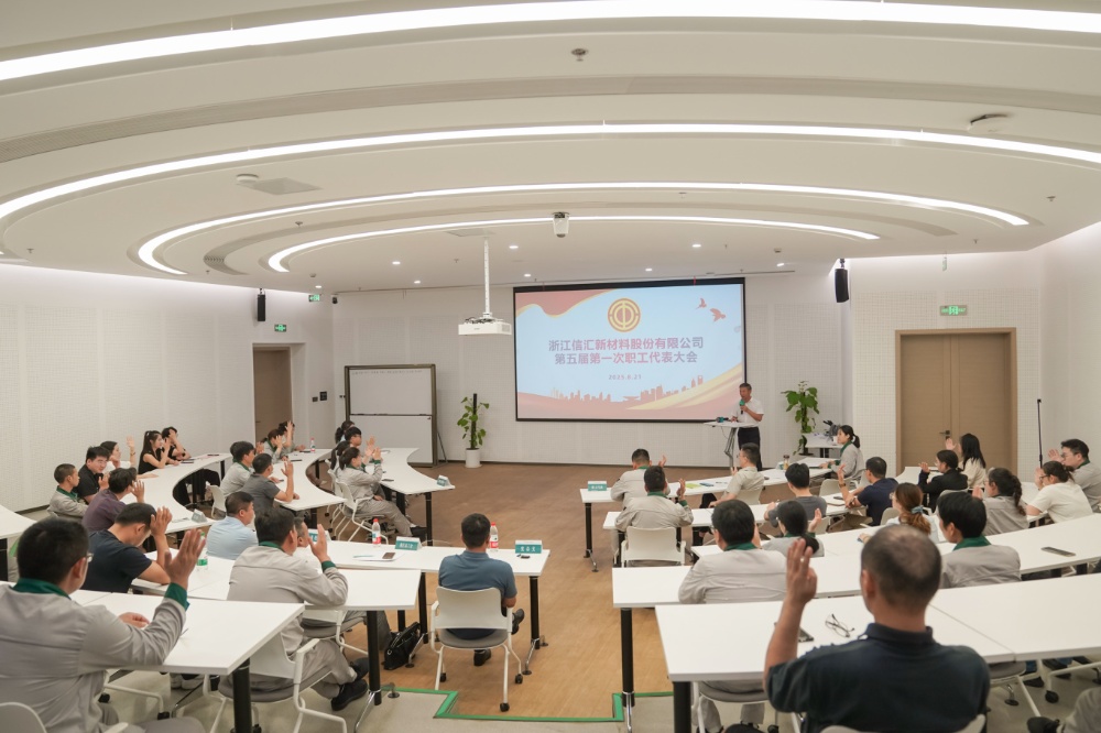近日,浙江信匯新材料股份有限公司召開了第五屆第一次職工代表大會和工會第五屆第一次會員代表大會,順利完成了工會委員會換屆選舉工作。公司總裁姜森,第五屆工會領導小組以及職工代表共60余人參加會議,港區總工會常務副主席趙菊明出席會議。